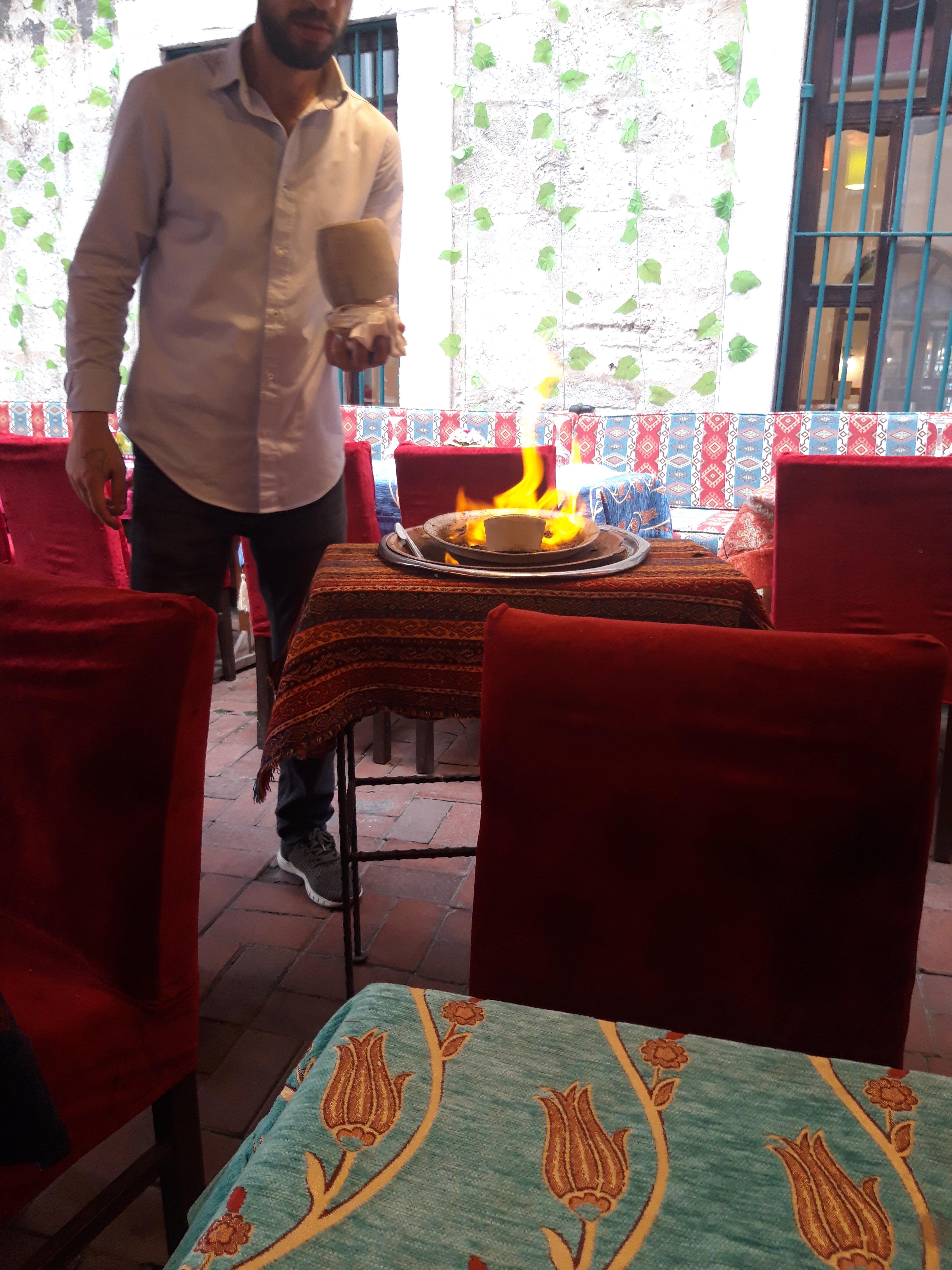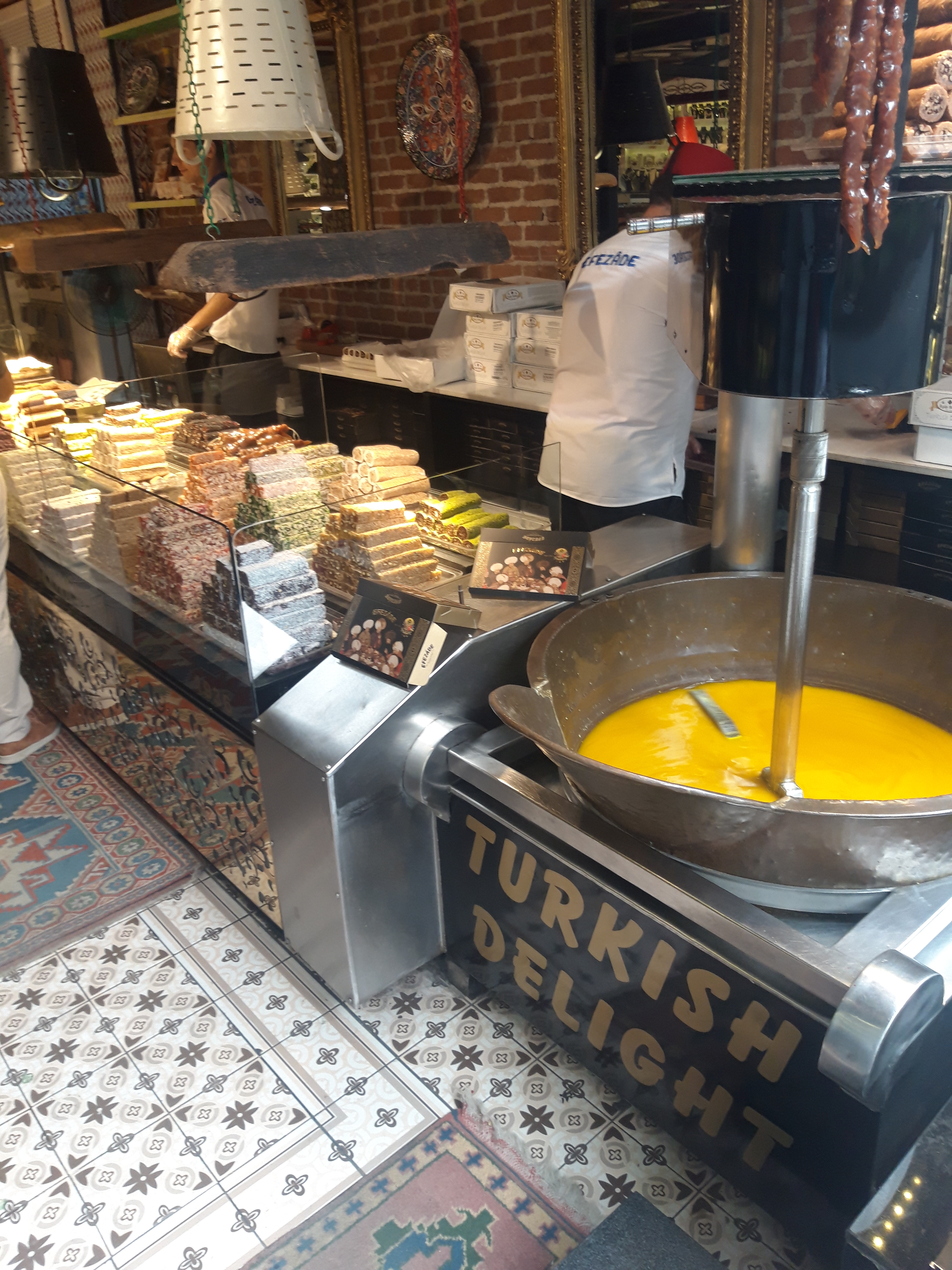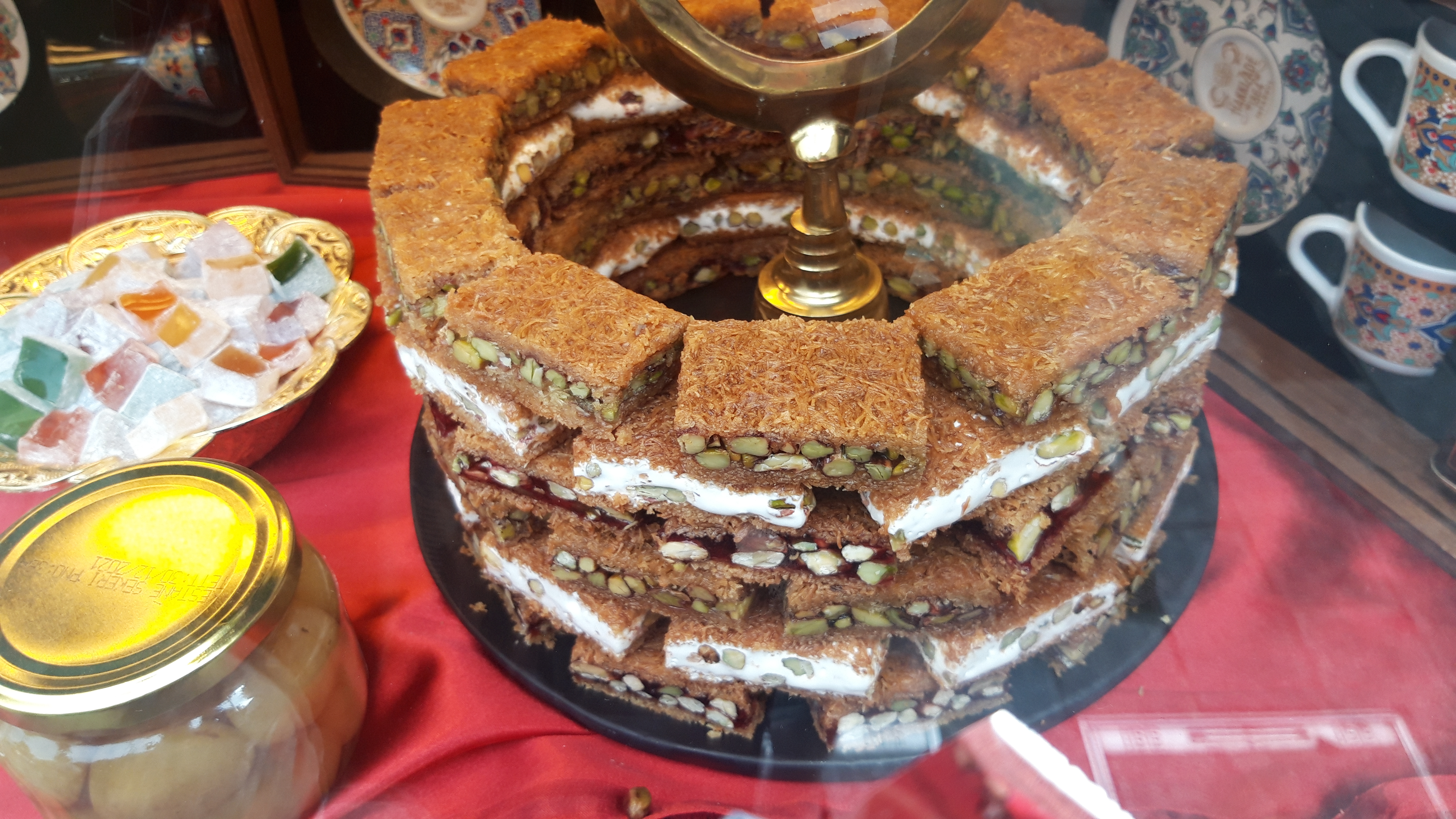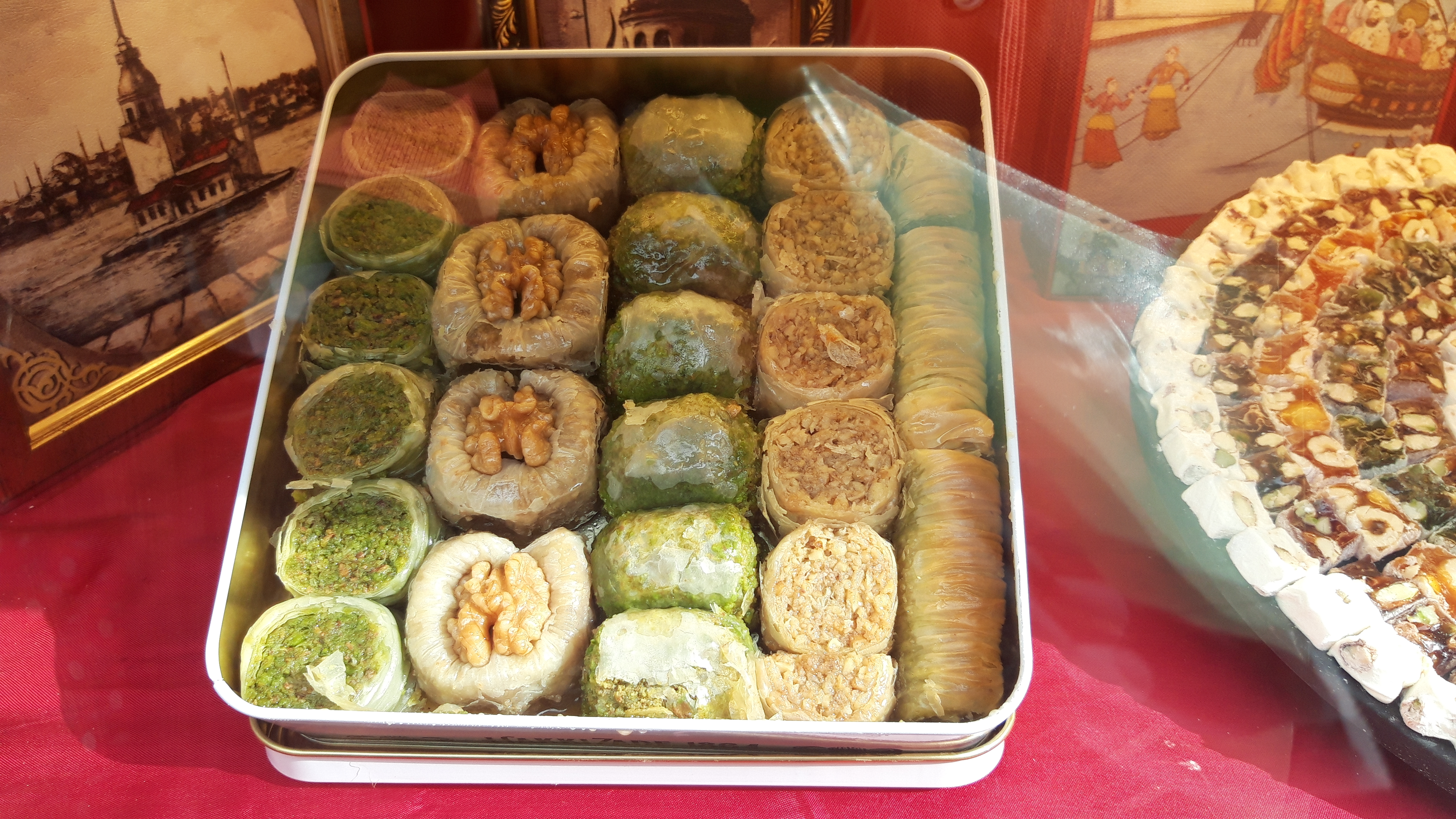 Of course, the trip should be enjoyed with good food. Well, I ditched the fine dining part (remember I’m on a tight budget, except for one time where I had dinner in this nice restaurant under Galata bridge called Yaka Balik with nice view of the sunset and the Bosphorus River with cruise boats passing by which reminds me of Paris) and instead settled most of the time for turo turo (it’s a Filipino term referring to how one points a finger to cooked dishes as displayed in heating trays on the restaurant counter like those in a cafeteria). Aside from the usual fish, meat, and chicken viands, Istanbul (or the rest of Turkey) is known for its Turkish desserts. I’m not really fond of desserts, but when it comes to Turkish desserts, I would indulge in this guilty pleasure in a heartbeat. There’s just so much variety to choose from: halvas, baklavas, and the popular Turkish delights. One of the oldest shops, Hakki Zade, apparently has been using the same recipe since 1864 and always popular with tourists. You don’t also have to worry eating or shopping late as restos and shops close at 2 in the morning while bars are open with loud band music booming ’til the wee hours of the morning.