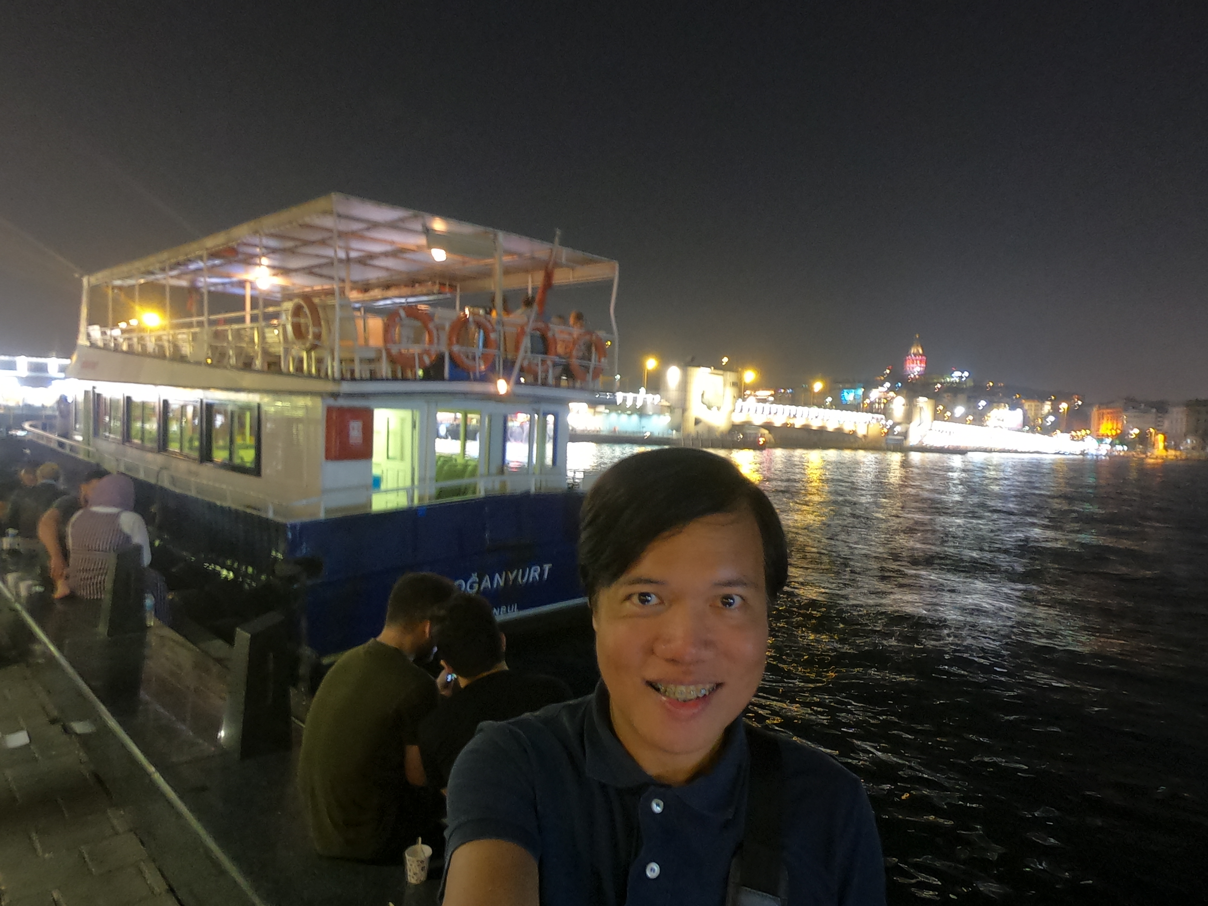 Along the Bosphorus river bank after having dinner at Yaka Balik restaurant under the Galata bridge