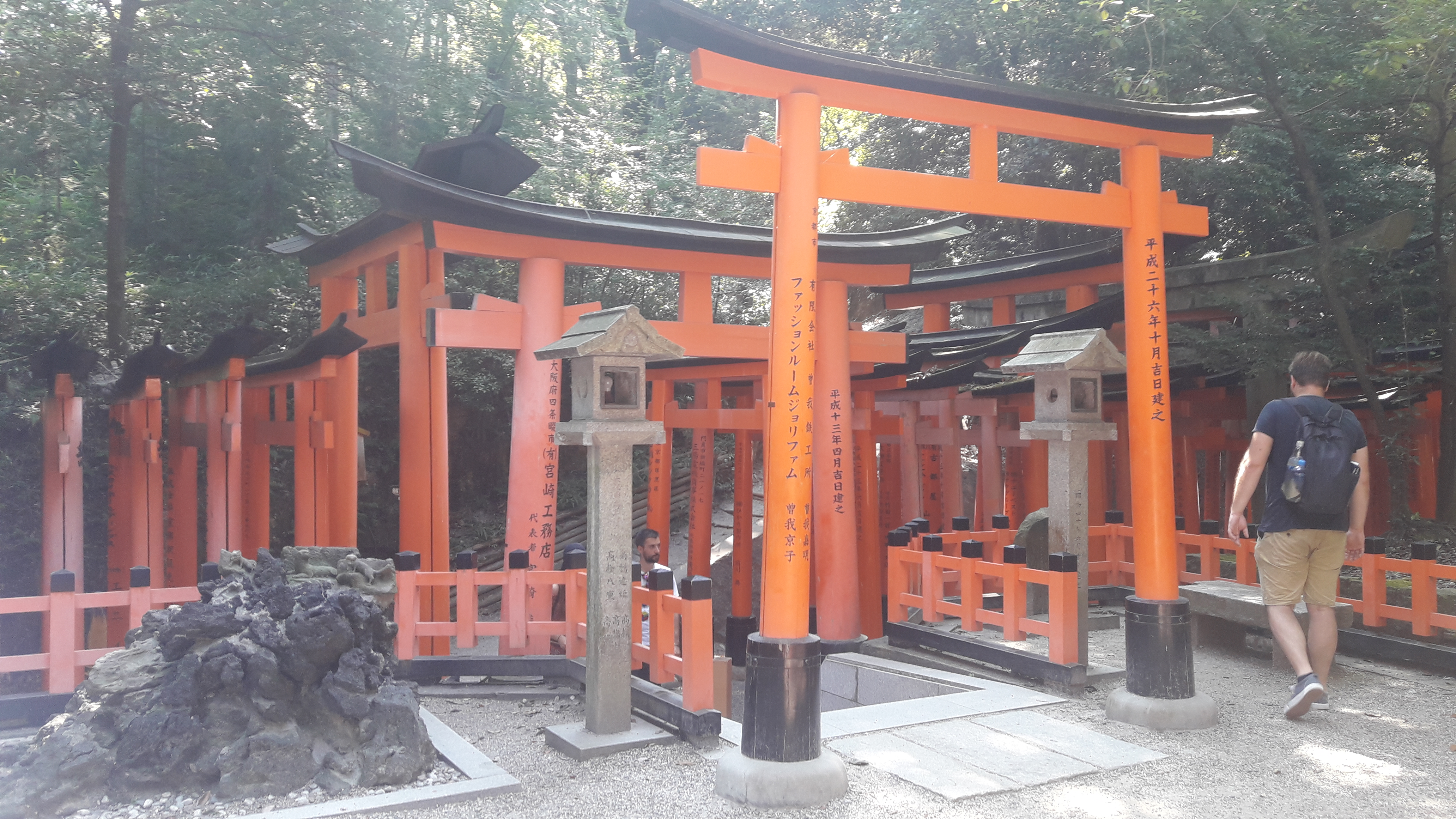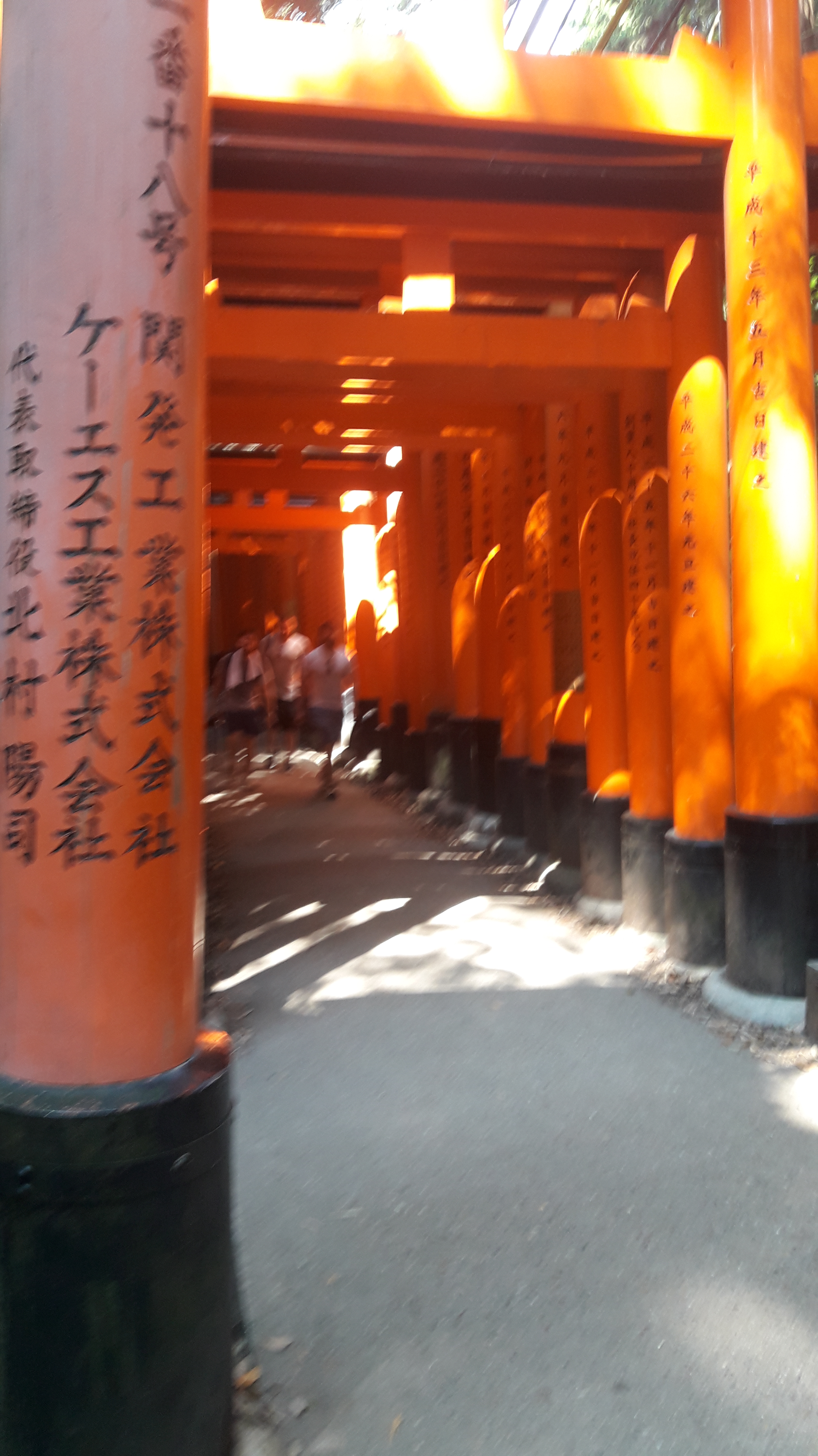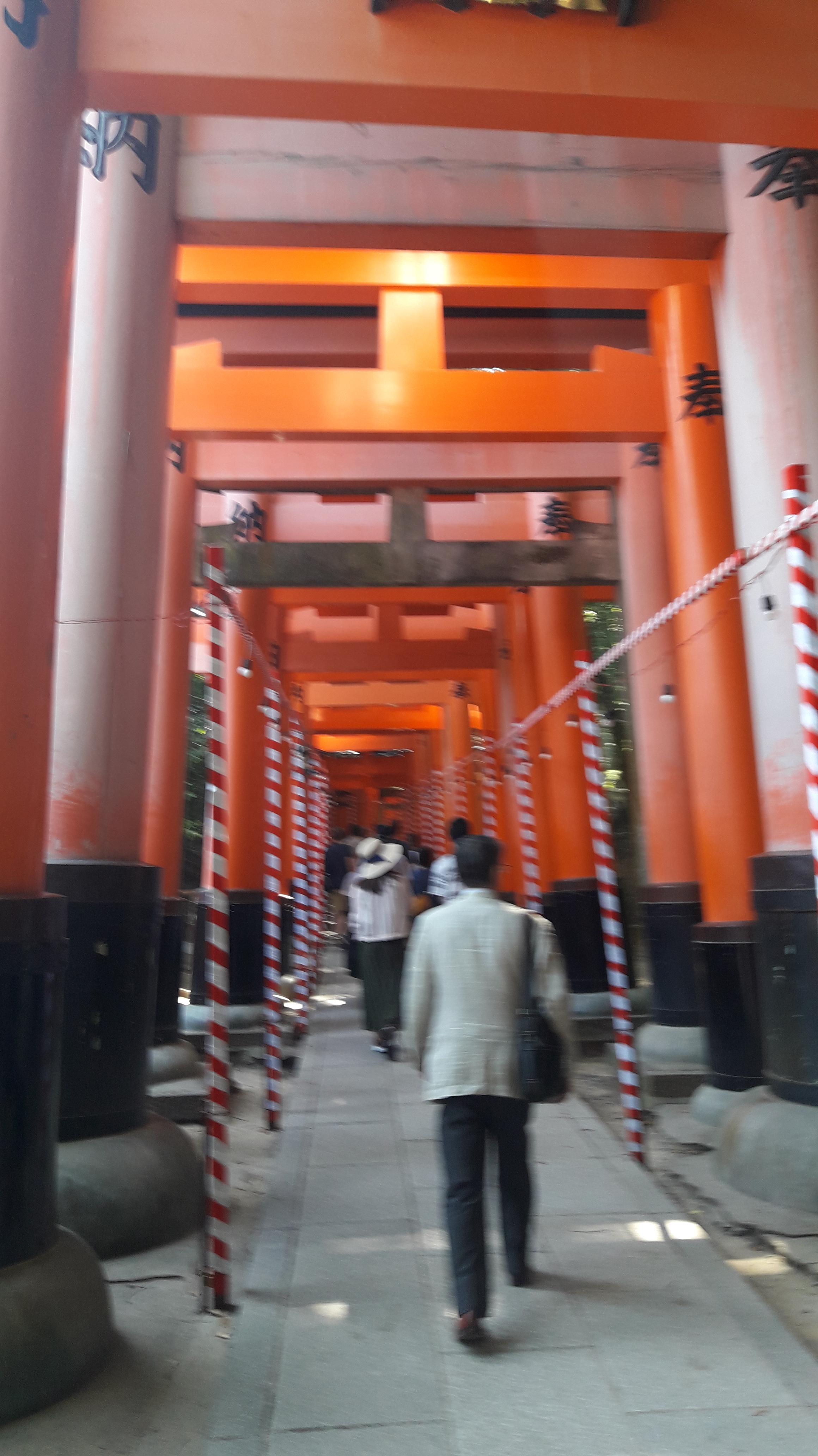There were two things that I was looking forward to in this leg of the trip. The iconic Mt. Inari (Fushimi-Inari) footpath and Kobe beef. So the next day, I decided to see Mt. Inari and know more about this popular spot. Folklore has it that this place enshrines the god Inari, who is revered as the god of the rice harvest, commerce, and business. A fox symbolizes the messenger of the god, so you will encounter shrines along the footpath that have statues of foxes. I even bought souvenirs (fox tokens) in one of the shrines for good luck (maybe bringer of good news in the future). The climb was not that steep, but because of the steps and the scorching summer heat. it was really difficult to complete the hike (get to the apex of the mountain) particularly when I was literally drenched in sweat and my back and legs were already killing me. Upon reaching the mid point of the trail, I thought I had enough, so I’ve decided to go back but took a different path that was more like flat foot trail rather than stair-like steps. Good thing that I took this path instead, coz while the steps have those series of reddish torii (which are actually more on the orangy side) that made this place postcard perfect and iconic, this alternative trail down is where most of the shrines are along the footpath. So I got to experience both the path of torii (these were donated or offered by different individuals and companies that came together and created this beautiful mountain trail) and the path of shrines.