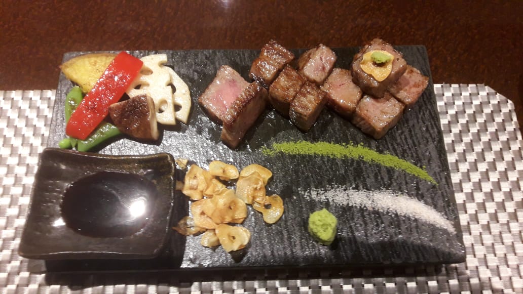 Kobe beef teppanyaki. The presentation is spot on (Premium Pound Sanjo-Kiyamachi).