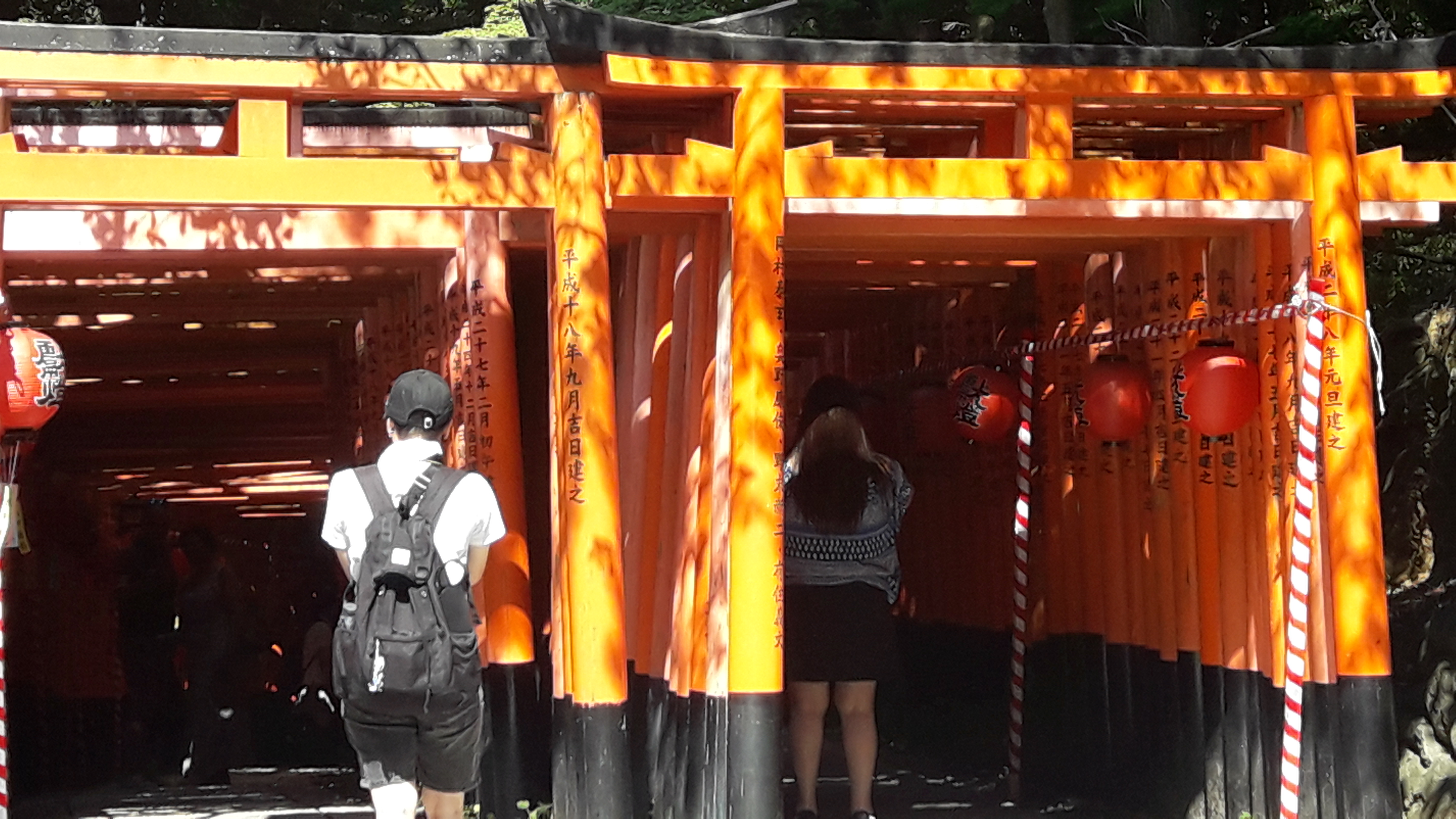 Choose your path to luck: Take the stair-like steps of the torii path to see the apparently century old tree where whoever goes under its roots will have good luck or take the flat foot trail and make several stops to the different shrines that will bring you blessings of the gods.
