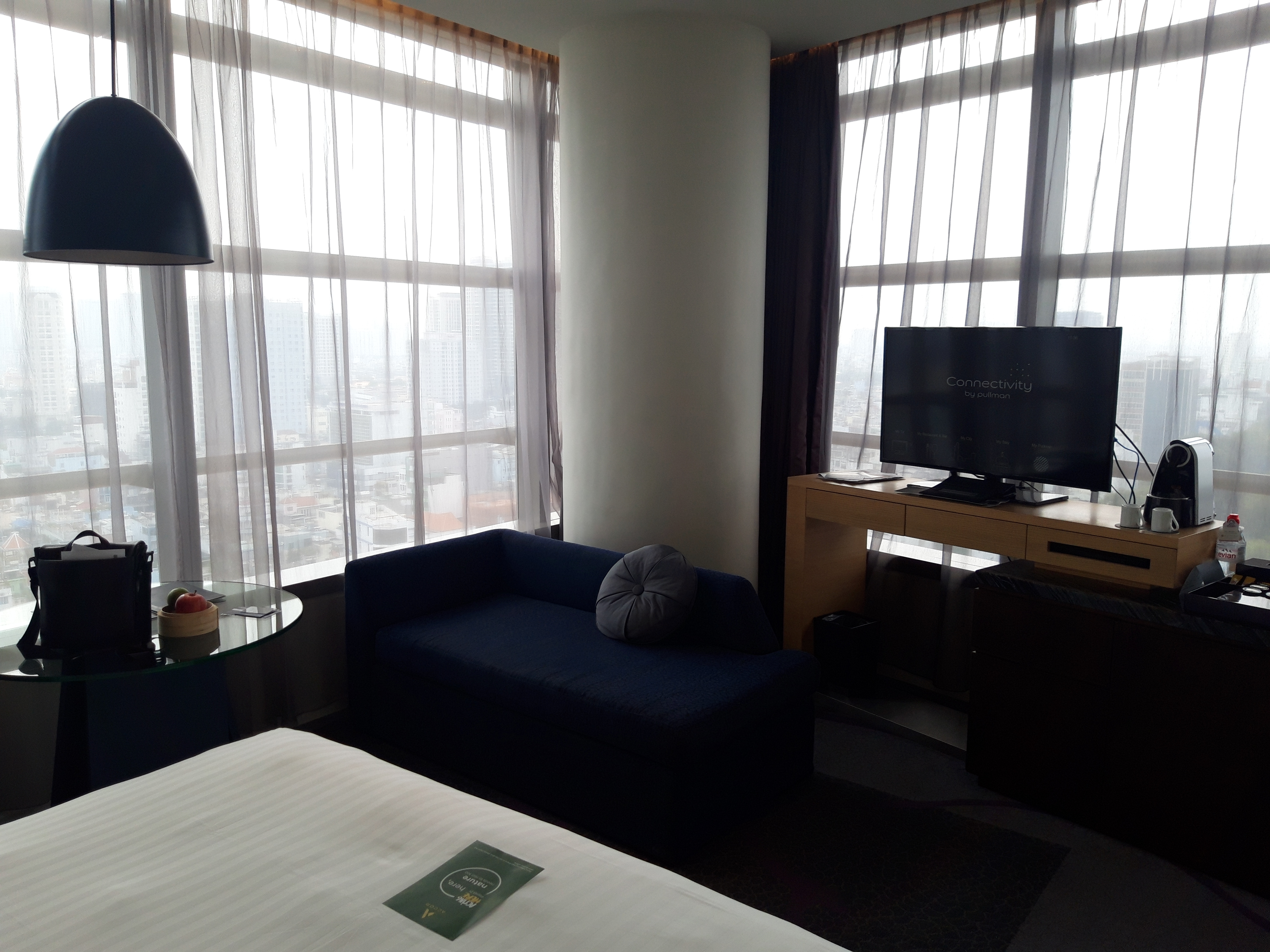 I booked a room at Pullman Saigon Centre using my Accor card. Though a high-end hotel, it wasn’t really pricey (Saigon is not an expensive city) so I thought why not enjoy a little luxury for a mid-scale hotel price. I was also surprised that my reserved room got upgraded. They gave me not only a bigger room (looks like a junior suite), but a corner room that has a 180 degree view (with floor to ceiling windows, it really gave me a very nice view of the city from my room). Check in was a breeze, and as usual got a free drink voucher (one of the perks of being an Accor member) which I availed at the Rooftop Bar on Christmas eve, enjoying my favorite cocktail for free. The location is also good, where it is just a few minutes walk to the Walking Street, and a few minutes ride to various places of interest.