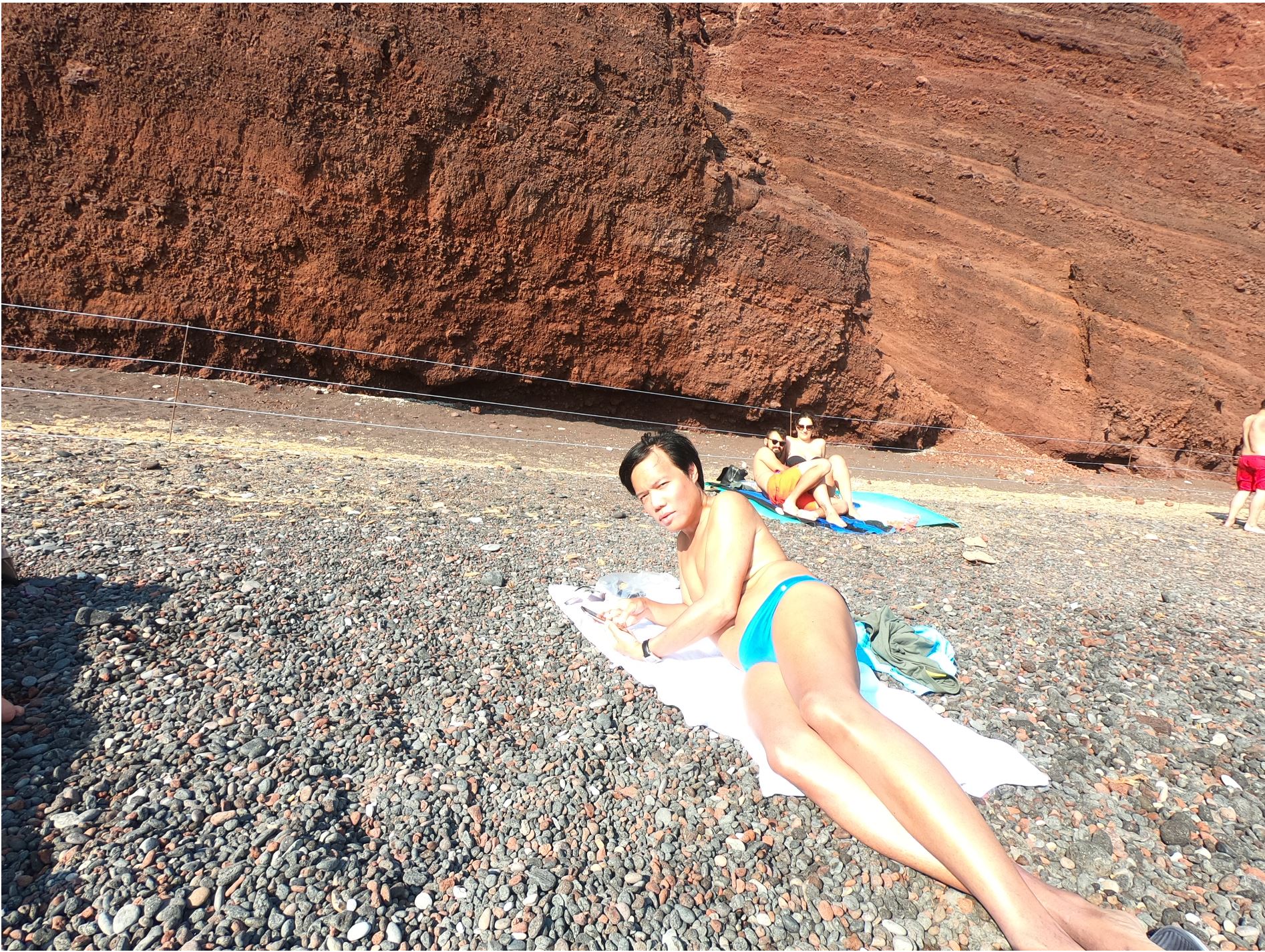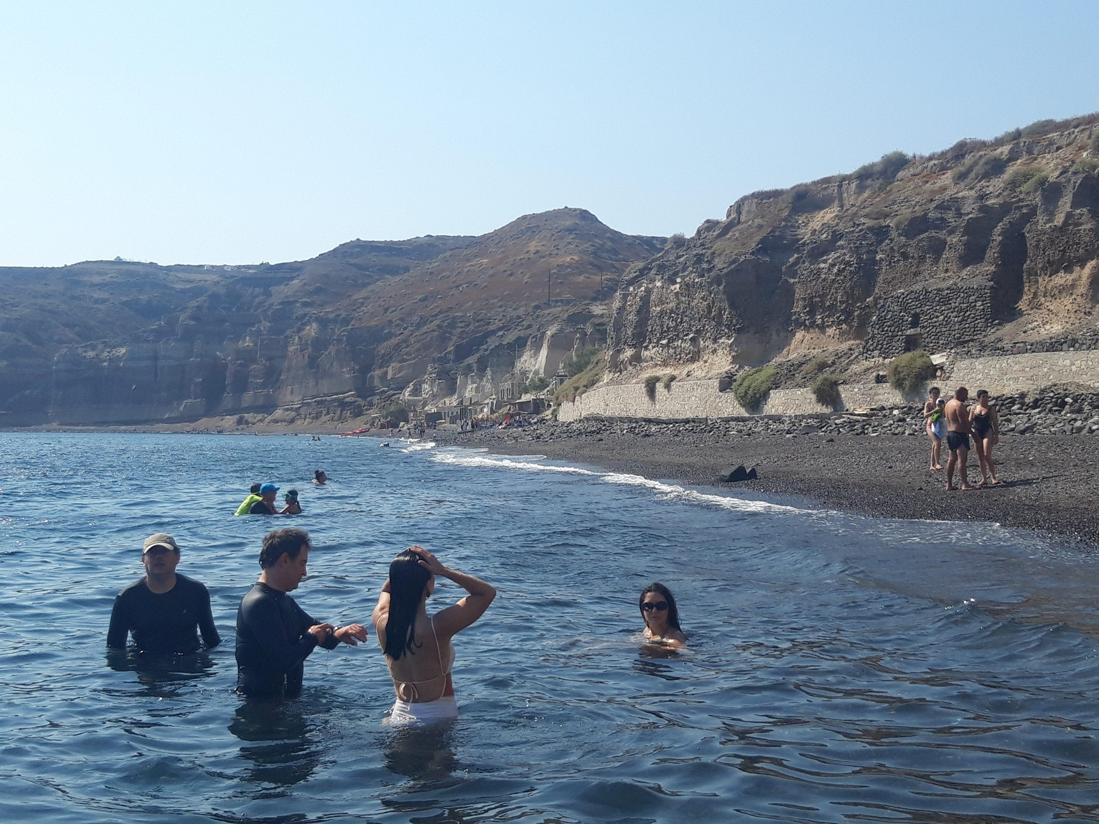 Beach hopping in Santorini (Greece) from left (clockwise): Black Beach, White Beach, Red Beach