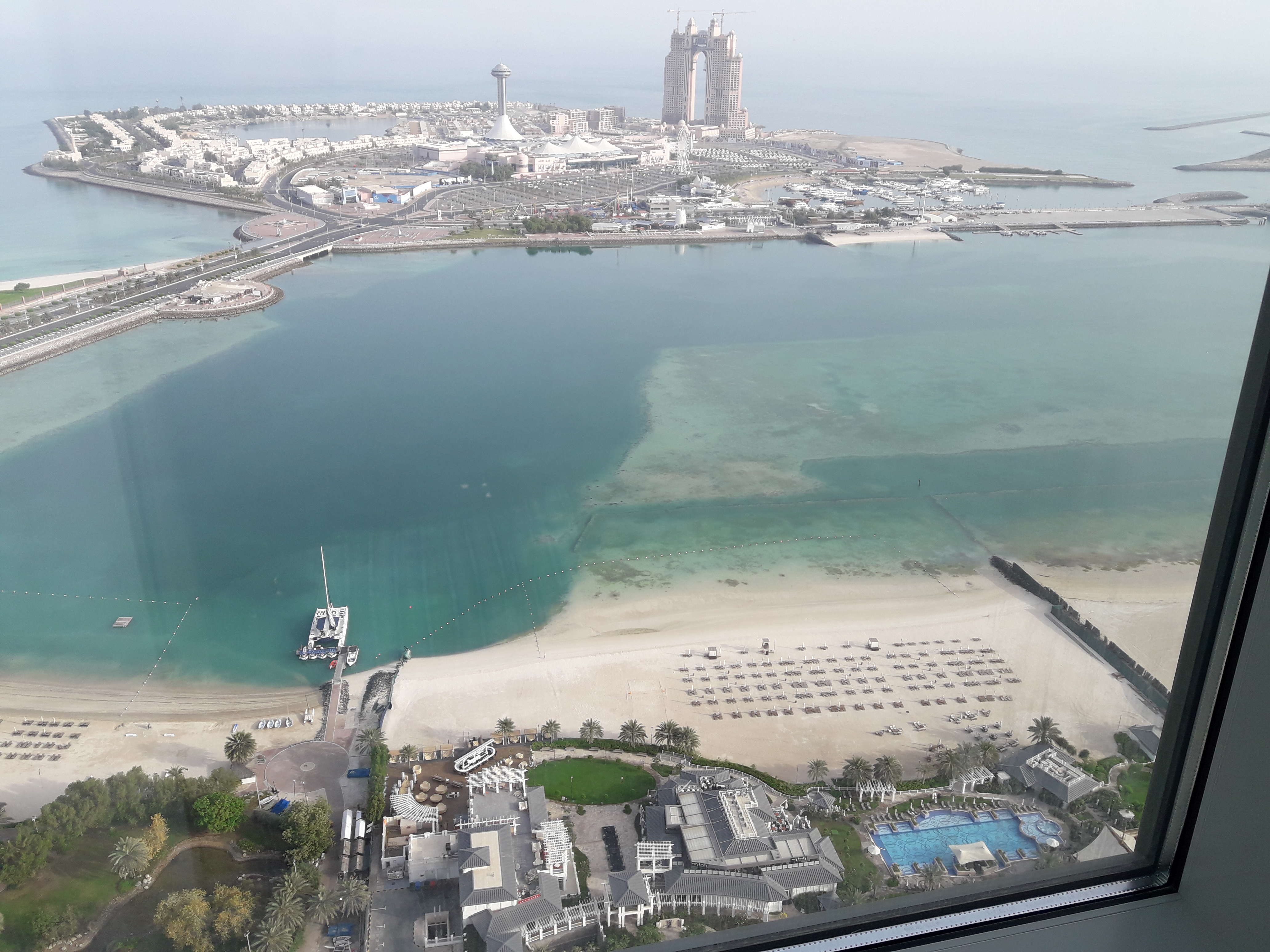 View of Arabian Gulf, Al Kasir Island, and Nation Riviera Beach Club from my hotel room (The St. Regis Abu Dhabi)