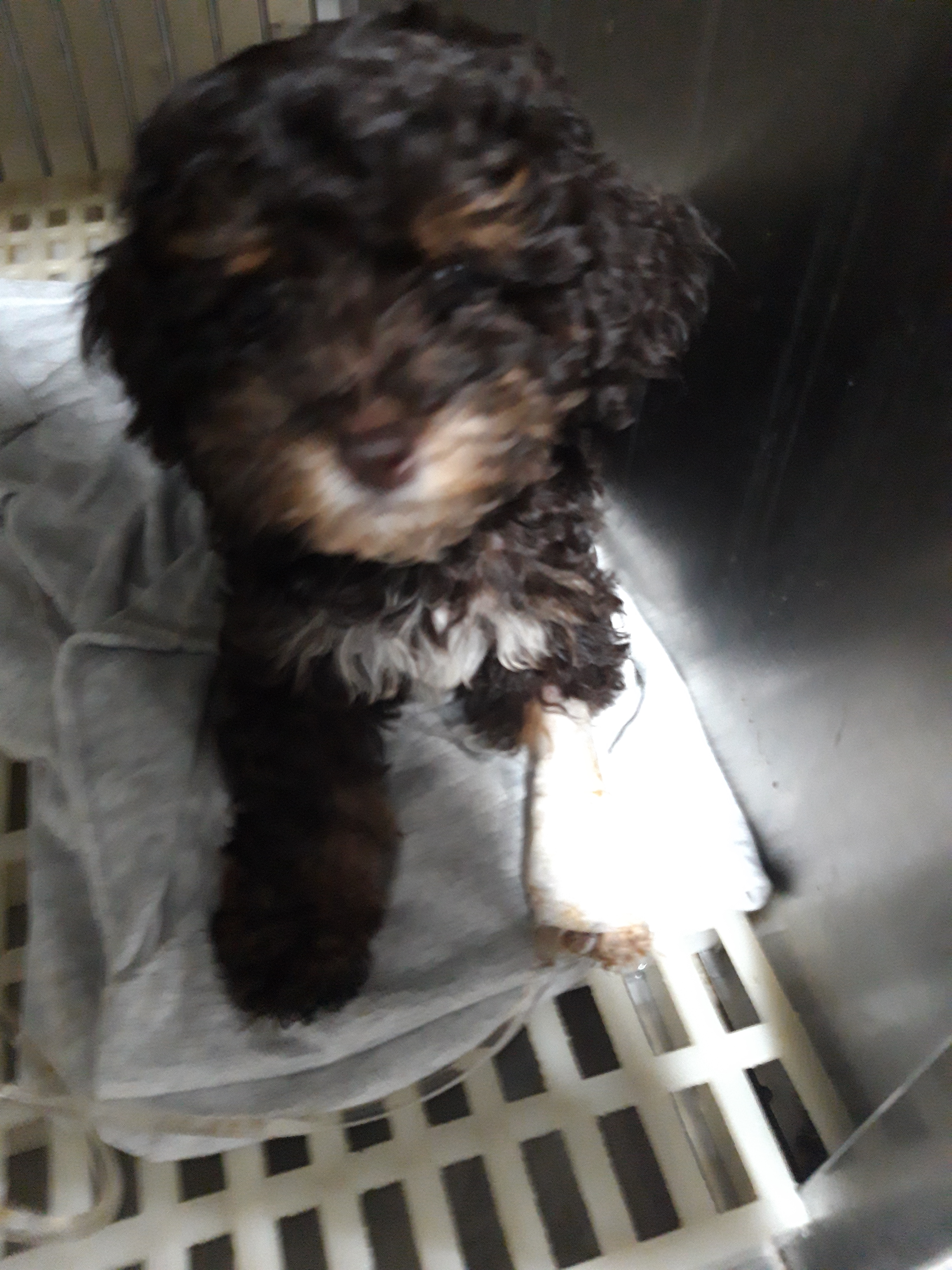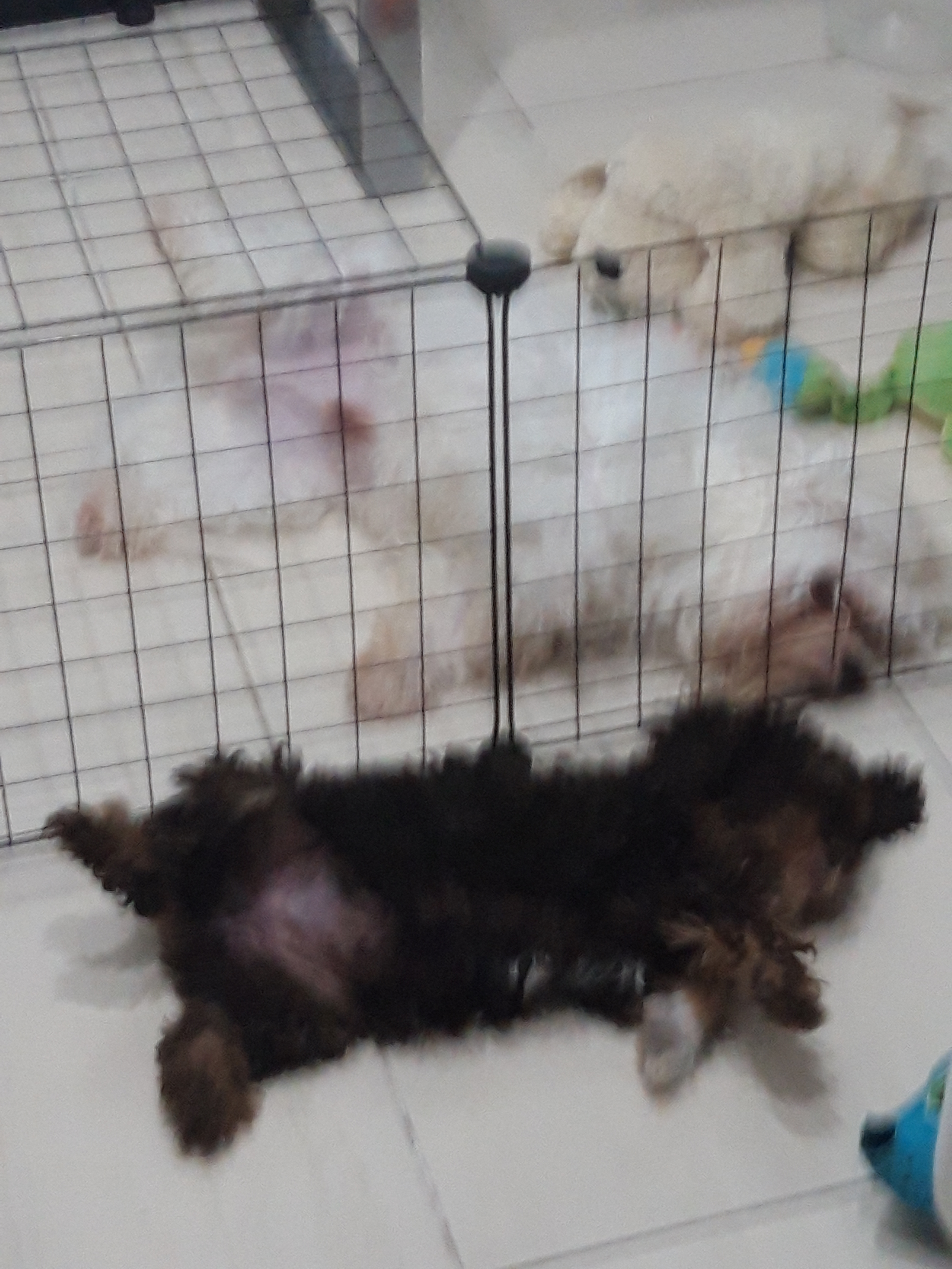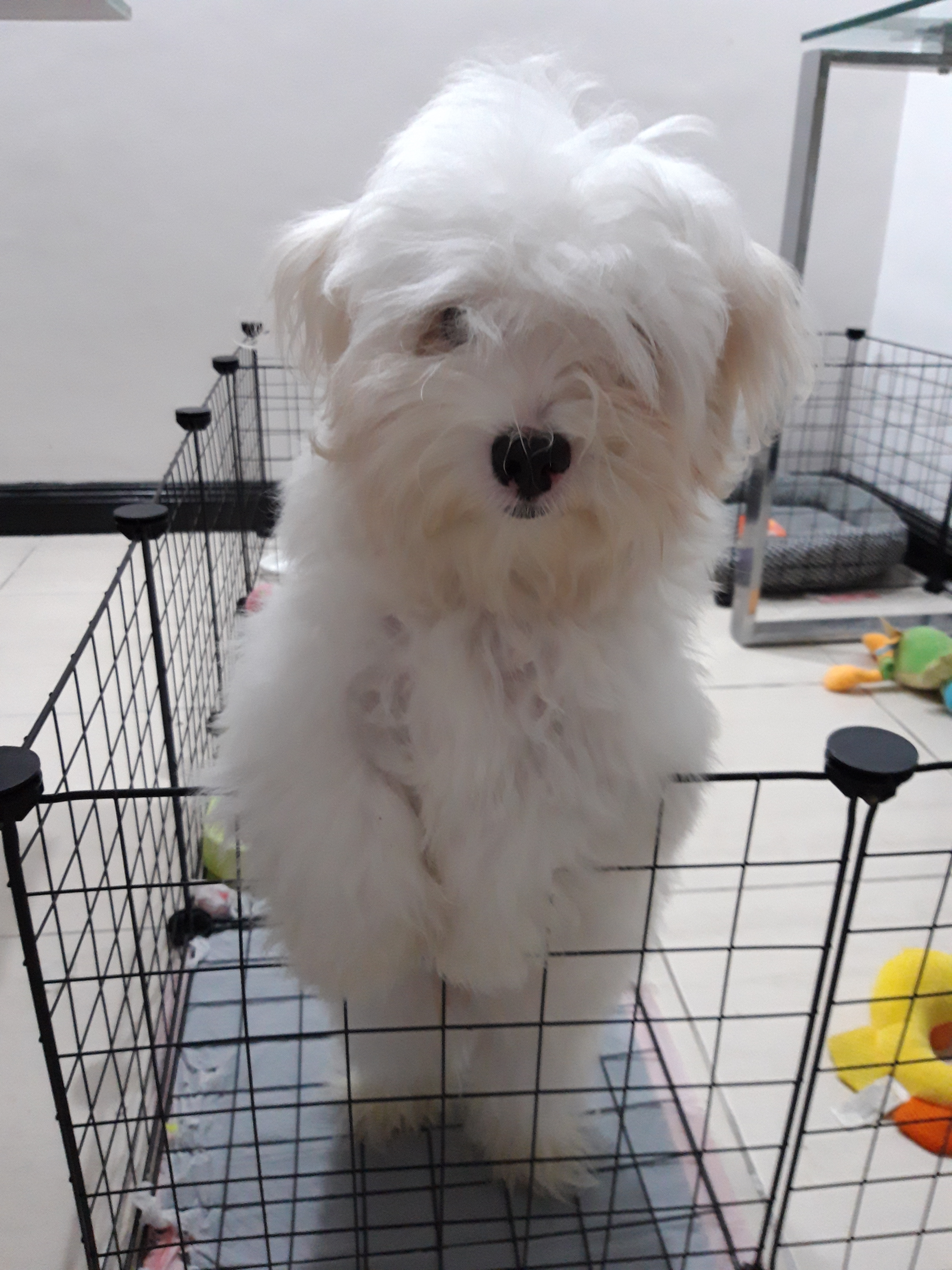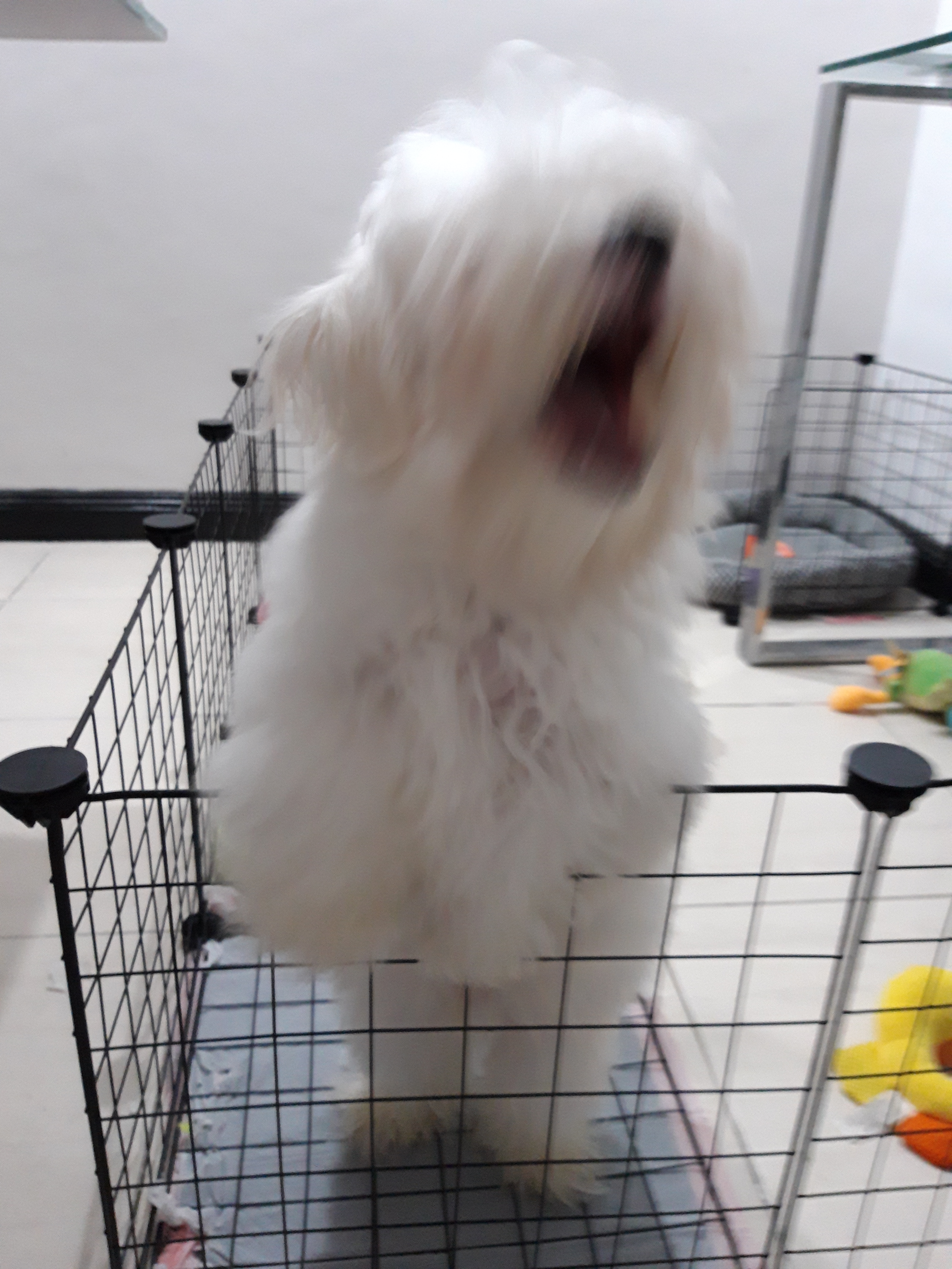 Cotton in his pen, yawning. Isn’t he a handsome pup?