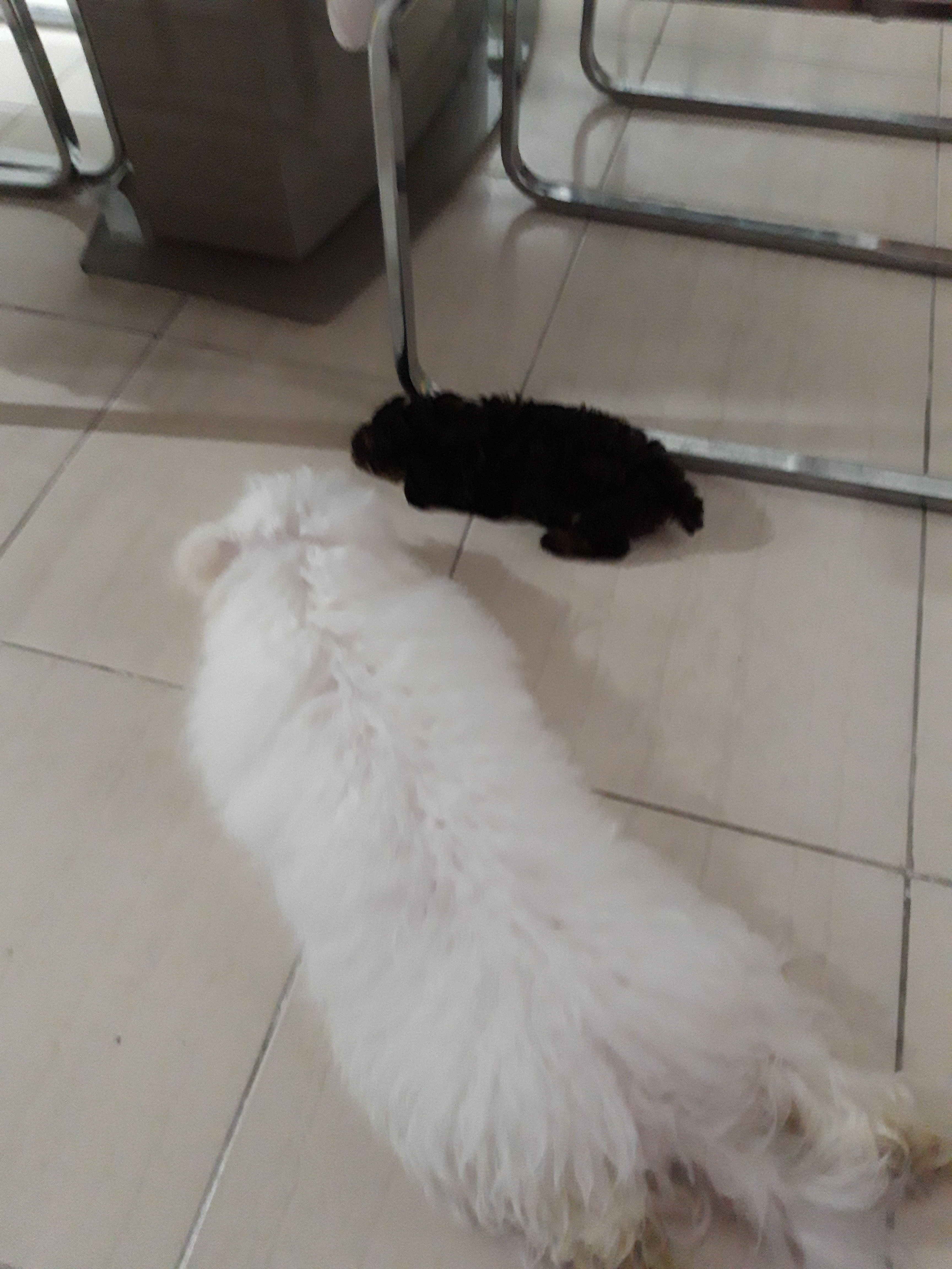Cotton (maltese) and Candy (phantom toy poodle) sleeping in the same position. Isn’t that adorable?