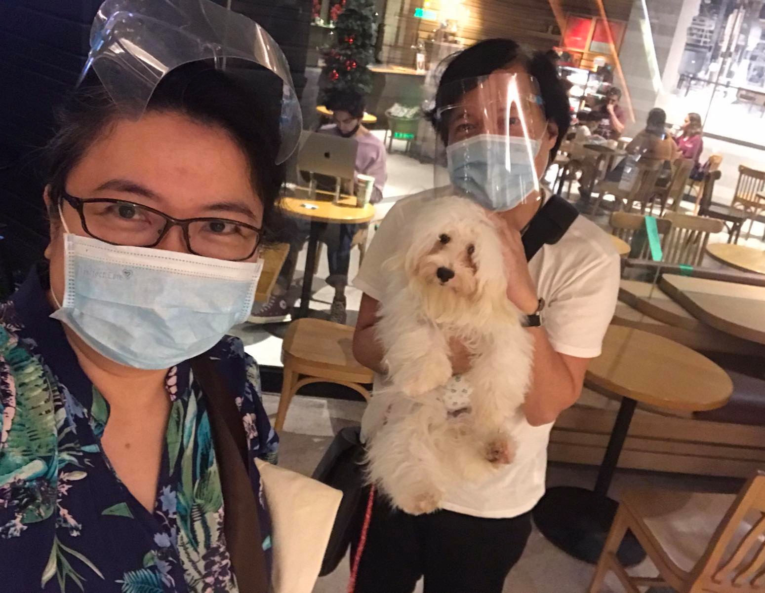 Cotton and I meeting a friend at Starbucks