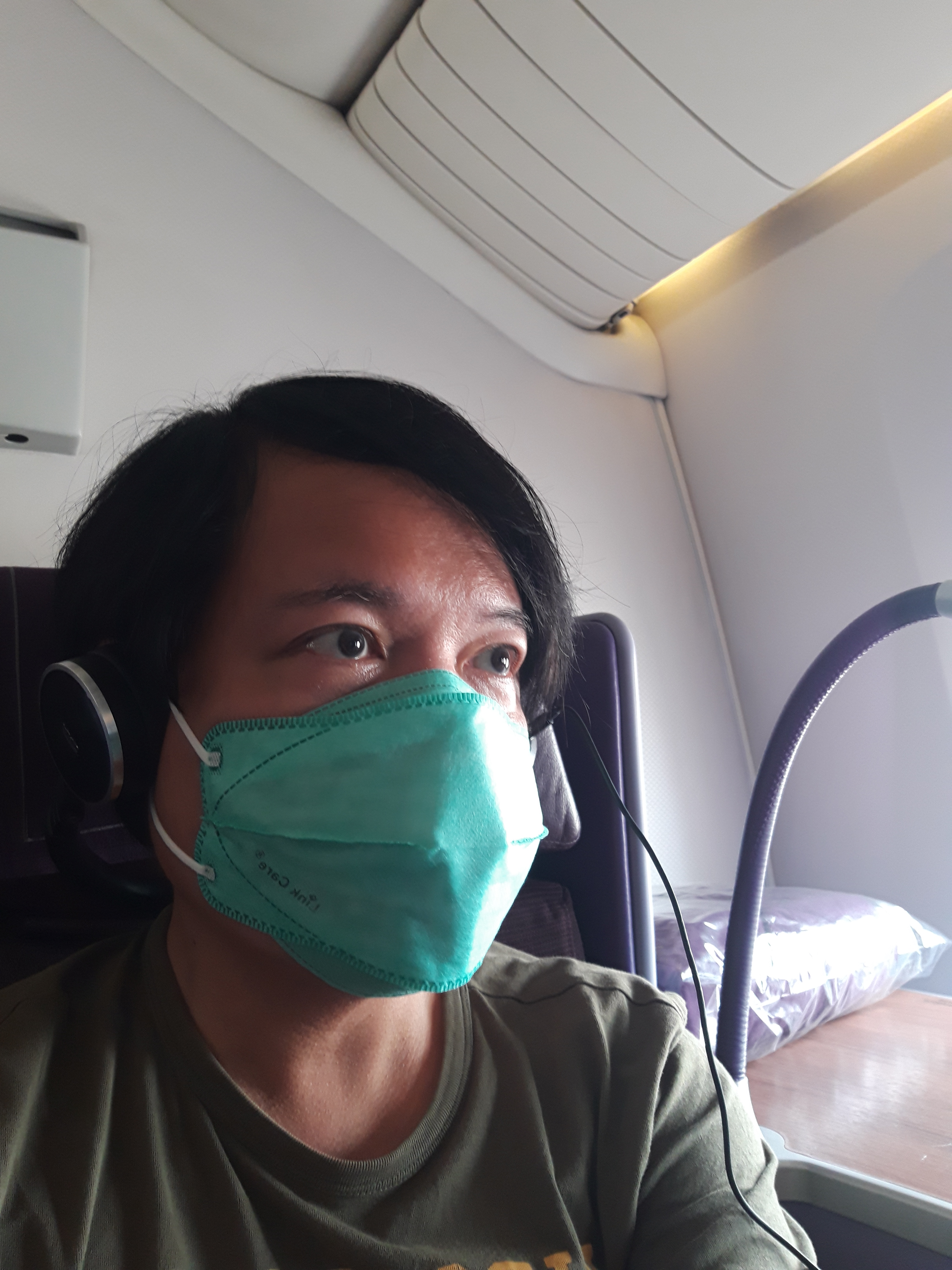 And just like that, I was queueing at the Philippine passport control in the airport as if it was pre-pandemic and took some meals from the lounge while waiting for my flight. The only difference this time is that you order your food online and will be served on your table. So I ordered anything that I can eat (I had the popular arroz caldo and adobo rice topping) and drink (two cans of Coke Zero and a bottle of water) since it would take some time for the same to be served, unlike before where you just take what you want to eat or drink from the different counters. Soon I found myself settling on my business class seat in Thai Airways’ 777-300ER. I can’t remember if it was the same aircraft that I flew last time, but the seat is much different now, which is a pleasant surprise (these are the types of surprises that I like when travelling). Unlike before where the seats are just wider than economy and with an arm rest that extends to a mini drink counter (think of Philippine Airlines business class seats for local flights or US airlines business class seats for regional flights), the flight now has its own cube (or mini suite whatever you may call it) where each seat is separated from the adjacent seat like having your own enclave (the cabin has a 1-2-1 seat configuration). I took the window seat which means I don’t have any adjacent neighbor (safer during this time of COVID). The seat can fully recline into a flat bed and the cube looks like that of Etihad’s business class seat (though this flight is a short haul one unlike the Etihad flight to Europe that I took a few years back). Though you don’t really need a flat bed for a 3-hour flight (or a business class seat for that matter), but gives you options for a comfortable (if you want to take a power nap) and safer flight.