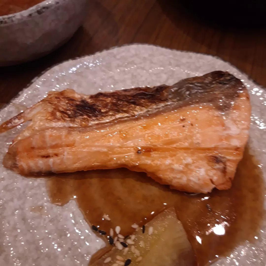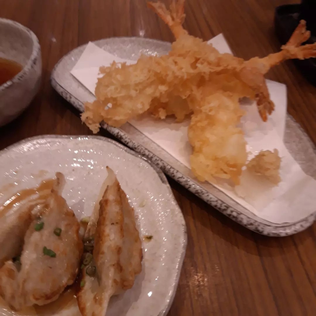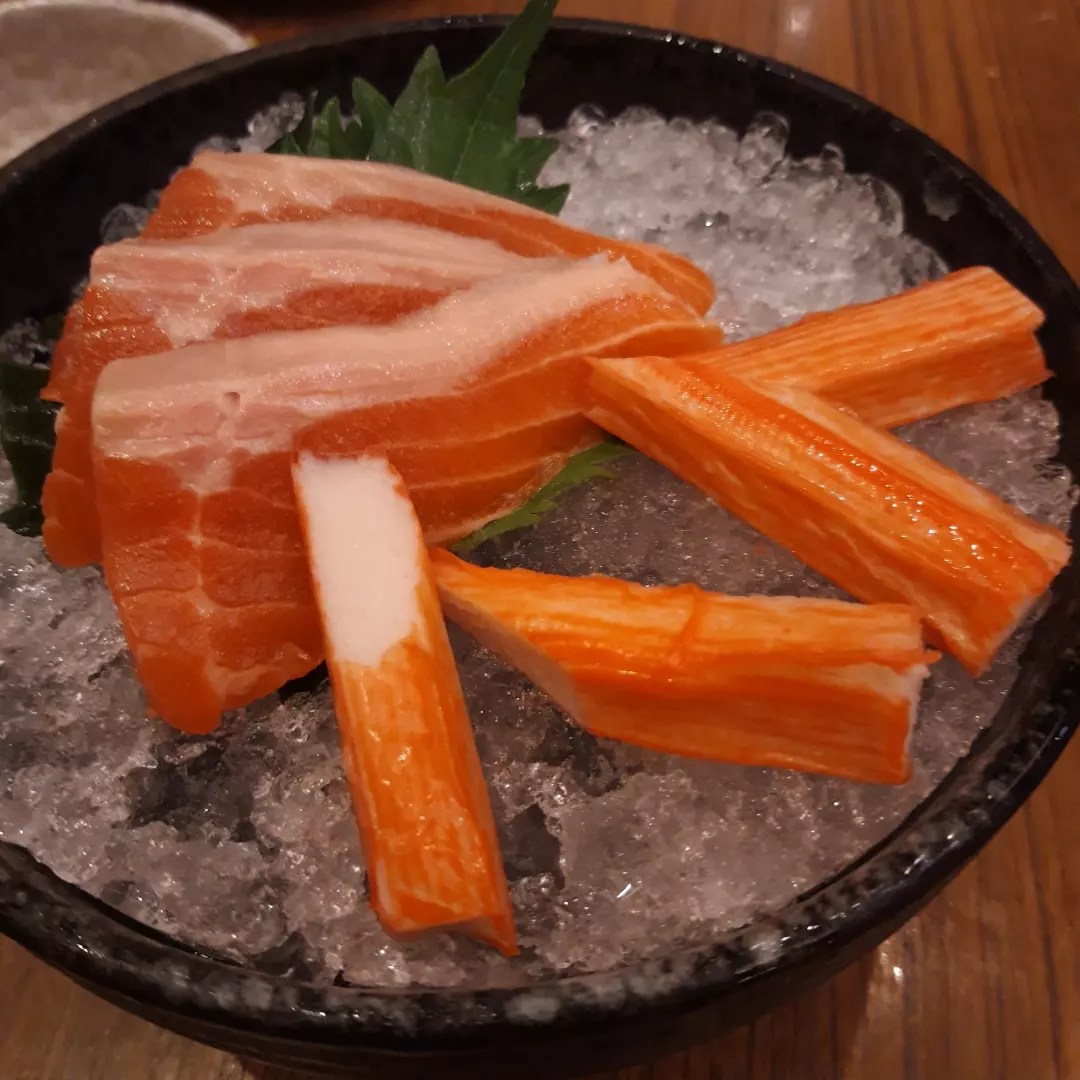 From top left: salmon and kani sashimi, tempura and gyoza, salmon teriyaki, and another serving of salmon and kani sashimi (I love sashimi!)