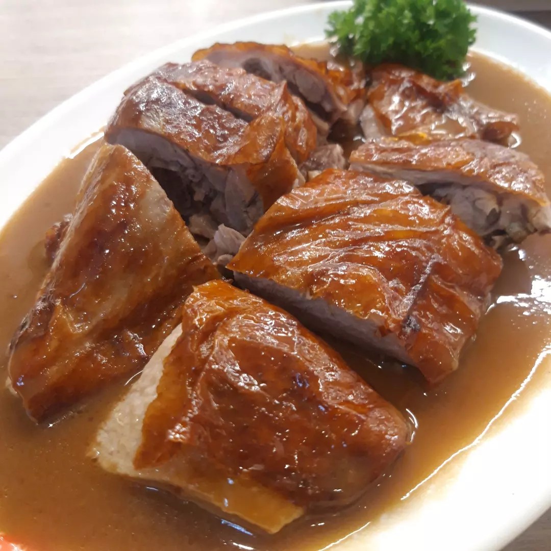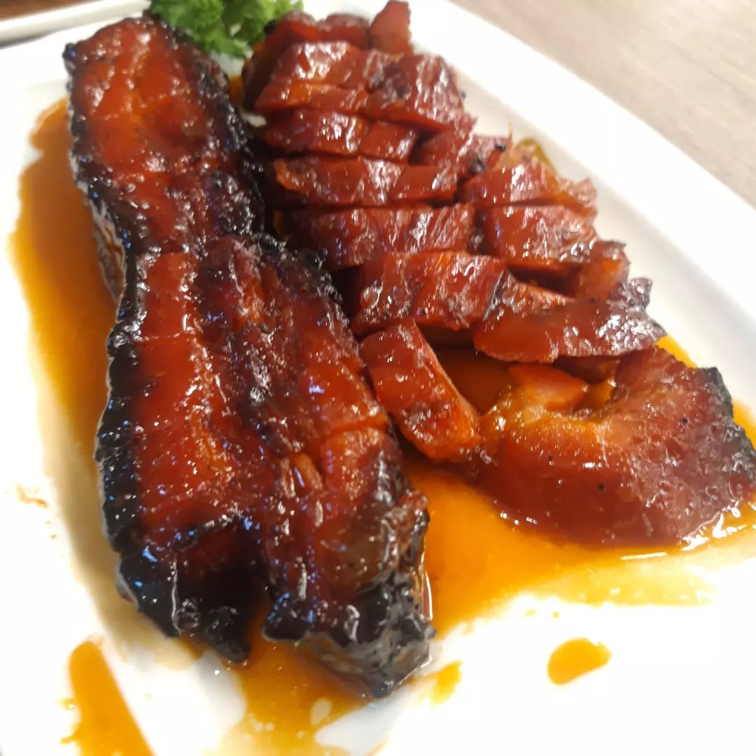 Top left: Chinese roasted duck/goose, combo of Chinese toro char siu and char siu (barbequed pork in two different pork cuts), Thailand’s fish cakes and crab meat in crab chili sauce