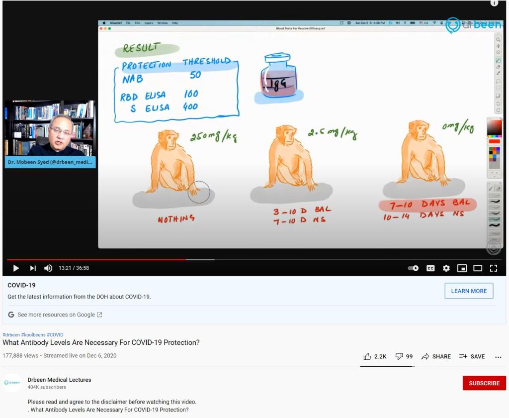 (Top) Dr. Been Youtube video where he talked about protection threshold levels; (below) testing technique/method used (ECLIA) in the quantitative test that I took